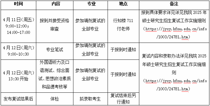 其他未尽事宜请见《永利yl23411集团2025年硕士研究生招生复试录取工作方案》http://yjsc.hfnu.edu.cn/info/1181/19461.htm