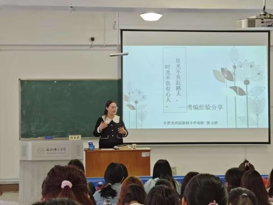 本网讯 9月23日上午,yl23411永利集团在锦绣校区逸夫楼A106教室举行2021级小学教育专业考编经验分享会,学院邀请2020届毕业生、合肥市西园新村小学南校教师陈玉婷分享考编经验、进行实习指导。yl23411永利集团2021级小学教育专业(非定向)学生参加了分享会,教育系副主任唐银主持会议。