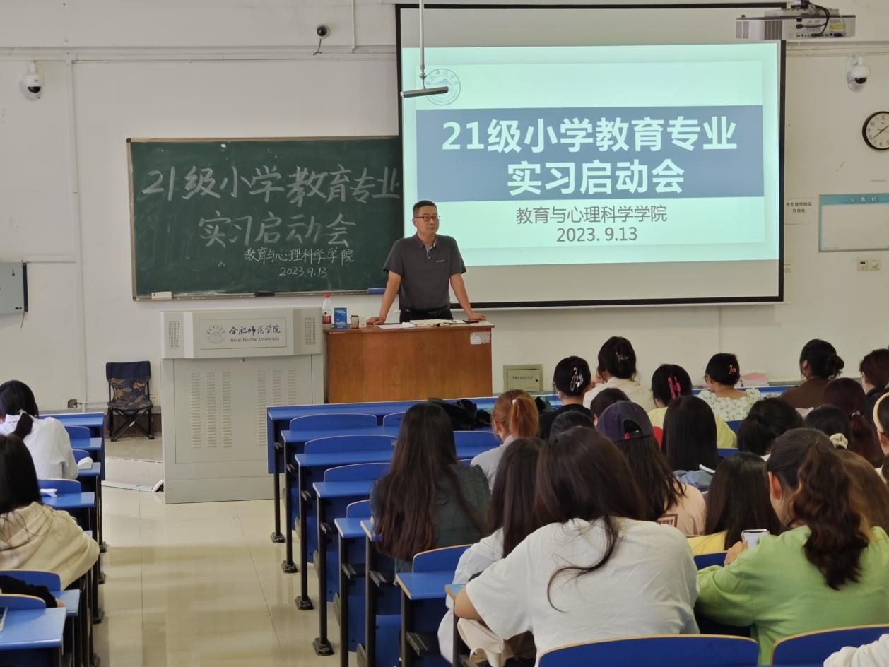 (本网讯)为顺利推进小学教育专业实习工作,9月13日下午,yl23411永利集团在锦绣校区逸夫楼A106教室开展2021级小学教育专业实习启动会。学院党委副书记陈帅,副院长胡连峰,学生指导教师孙晓青、韦立君、杨婷、苏炫等出席会议,2021级小学教育专业全体同学参加会议。会议由教育系副主任唐银主持。