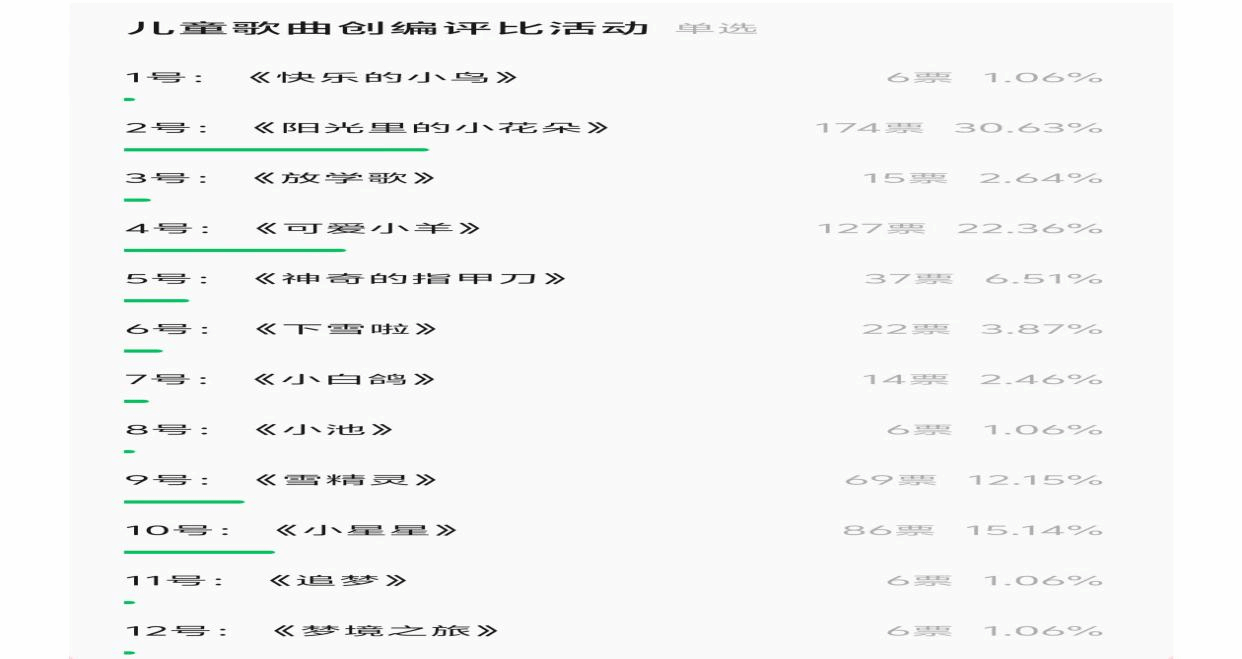12首原创歌曲曲调欢快,歌词意蕴丰富,朗朗上口,既便于儿童传唱,也体现了儿童阶段简单灵动的情感特点。本次评比大赛通过微信公众号进行线上投票,共有近600人参与,网络播放量6000余次。