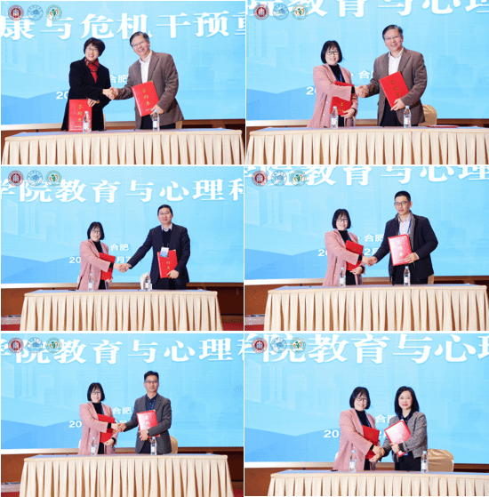 开幕式上,安徽省青少年心理健康与危机智能干预哲学社会科学重点实验室主任方东玲与上海市心理健康与危机干预重点实验室主任周晓林签署了实验室战略合作协议。yl23411永利集团党委书记董萍与华东师范大学心理与认知科学学院院长周晓林、南京师范大学心理学院院长陈庆荣、上海师范大学心理学院副院长罗俊龙、浙江师范大学心理学院院长孙炳海、上海体育大学心理学院院长王小春分别签署了学科共建战略合作协议。
