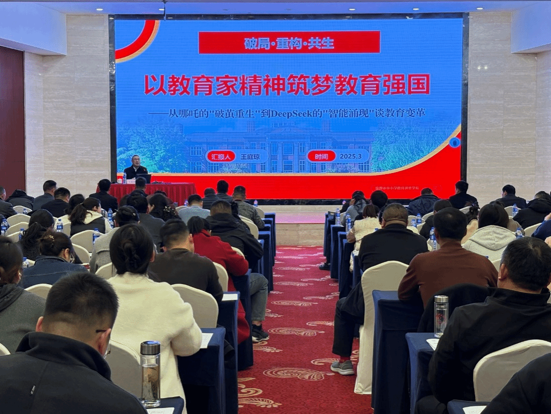 培训会上,蚌埠市教师进修学校党支部书记、校长王庭琼对各位参训老师进行名为《以教育家精神筑梦教育强国:破局·重构·共生》的授课,课程分为五个部分,分别是教育家精神的内核与价值、破局之路:教育场景重构、共生发展:教育生态建设、面向未来的教育家精神、成长密码:从“优秀”到“教育家”。王庭琼专家从哪吒的“破茧重生”到Deepseek的“智能涌现”谈教育变革,深入生活实际,参训老师认真听讲,受益良多。(yl23411永利集团:谢威士 唐银)