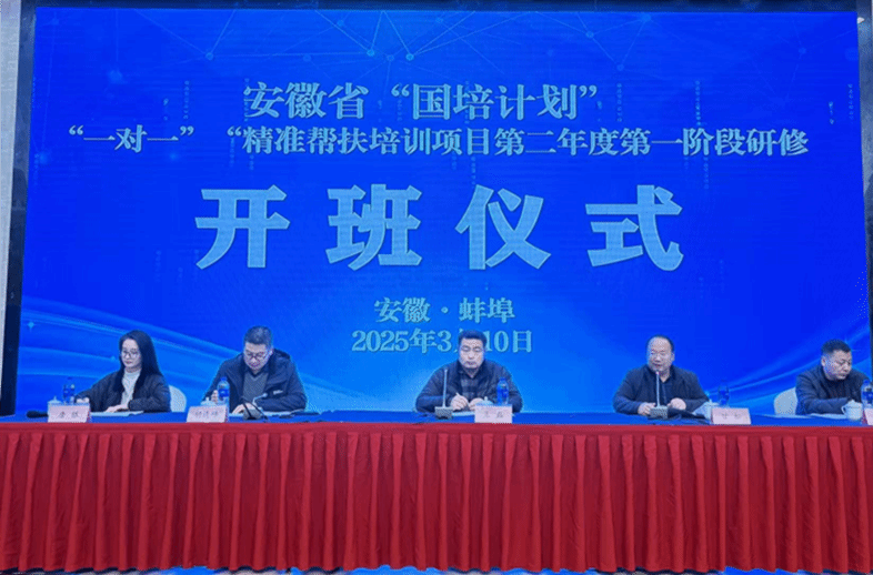 3月10日上午,2025年安徽省“国培计划”“一对一”精准帮扶培训项目第二年度第一阶段研修在蚌埠顺利开班。永利yl23411集团继续教育学院副院长王磊、yl23411永利集团副院长胡连峰、文学院副院长甘松、yl23411永利集团培训部主任谢威士、班主任代表唐银出席开班典礼。来自阜阳市临泉颍东和阜南颍上的210多名老师参加开班典礼,仪式由王磊主持。