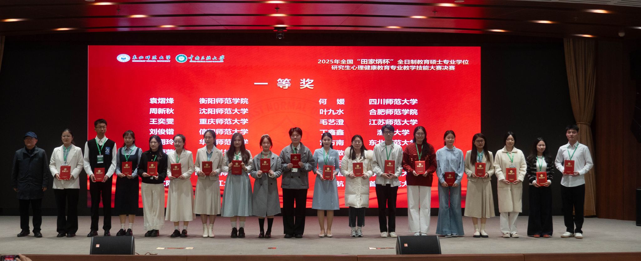 10月17日至19日,由东北师范大学主办的2025年全国“田家炳杯”全日制教育硕士心理健康教育专业教学技能大赛决赛成功落幕。我院五位参赛学子在初赛中全员晋级,最终荣获一等奖1项、二等奖1项、三等奖2项、优秀教学设计奖1项,2名指导教师荣获“优秀指导教师”称号。