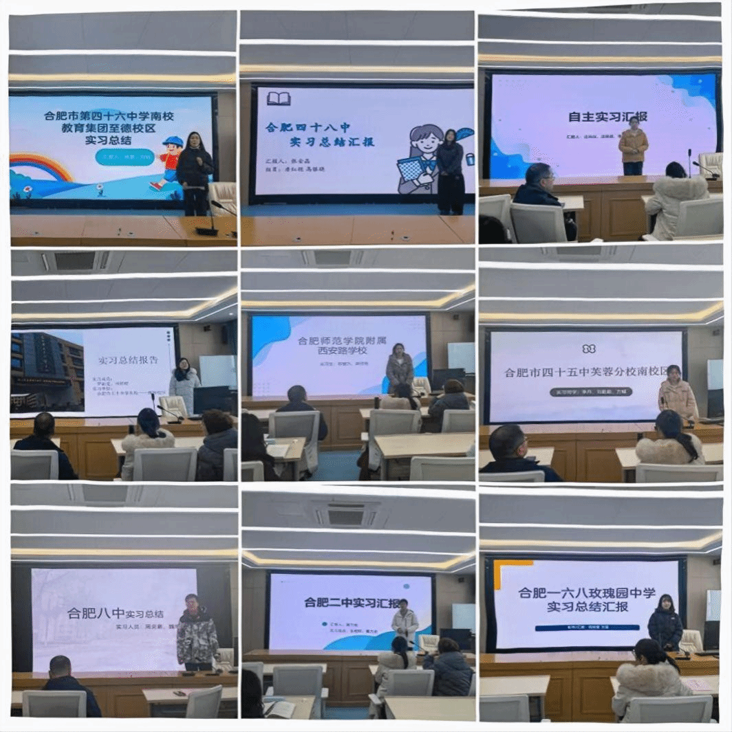 会议围绕2025年下半年为期四个月的教育实习工作展开,总结实践成效,交流实习体验,并就进一步优化研究生实习工作听取学生和教师意见建议。会上,学生代表结合各自实习经历,从实习内容、专业实践收获以及现实困惑与改进建议等方面进行了交流汇报,现场讨论充分、气氛热烈。来自合肥八中、合肥二中、合肥168玫瑰园学校、合肥48中、合肥45中芙蓉分校、合肥46中南校教育集团至德校区、永利yl23411集团附属西安路学校、合肥50中天鹅湖教育集团、合肥50中东校等实习基地的研究生代表依次发言。同时,来自安徽省潜山第二中学、河南省商丘市昌华中学、安徽省淮南市第三中学、江苏省徐州市经开区实验中学的4名自主实习研究生也作为代表进行了交流分享。