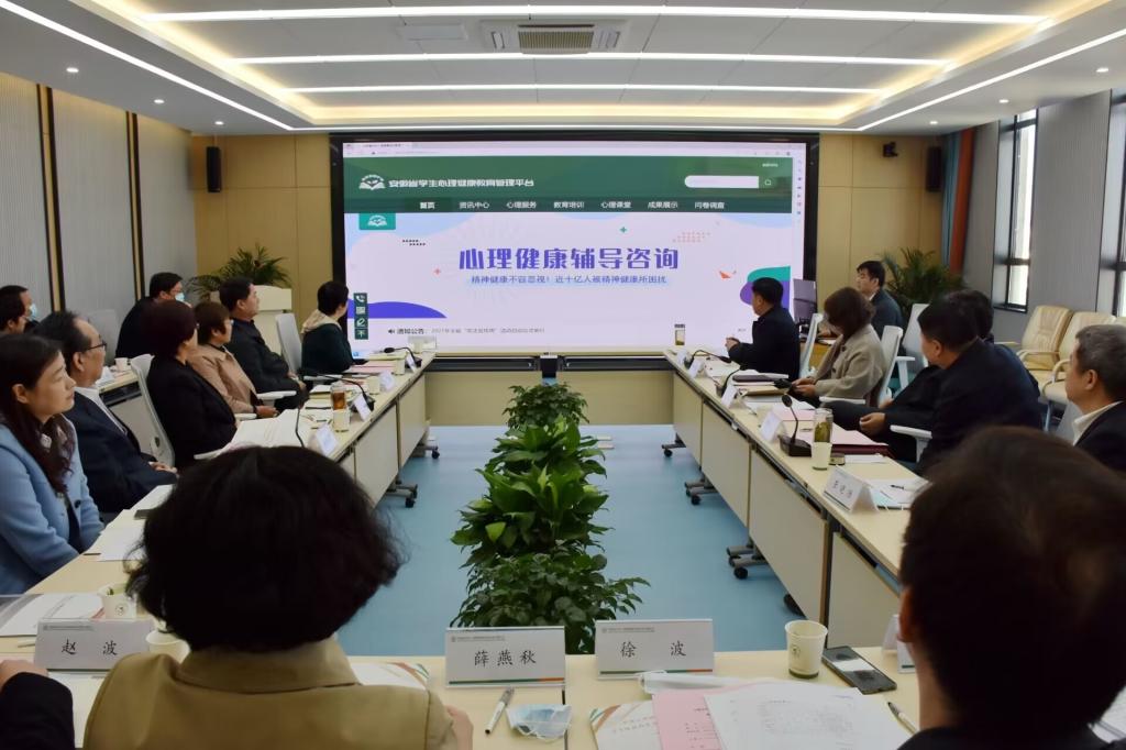 11月14日上午,安徽省委教育工委副书记王佩刚,省委教育工委委员、省教育厅副厅长解平率省教育厅基教处、学生处、学校安全管理处、思政处等一行8人,深入学院锦绣校区图书馆7楼安徽省学生心理健康教育管理平台现场考察调研,参观了心理健康中心,并召开建设工作推进会。学院党委副书记、院长方东玲,党委副书记梁立昌,平台项目负责人姚本先,党委委员、财务处处长常树宝,教师教育学院党政负责人、相关职能部门负责人及平台项目课题组和中电信数智科技有限公司等相关人员参加了会议。会议由方东玲主持。