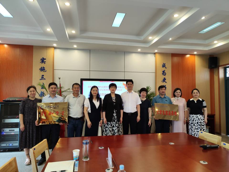 在签约授牌仪式上,方东玲、杨会谦为永利yl23411集团附属实验小学大学生就业基地和行知学堂揭牌,李群、彭正签署了合作协议。(教师教育学院:王磊)