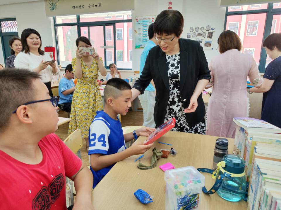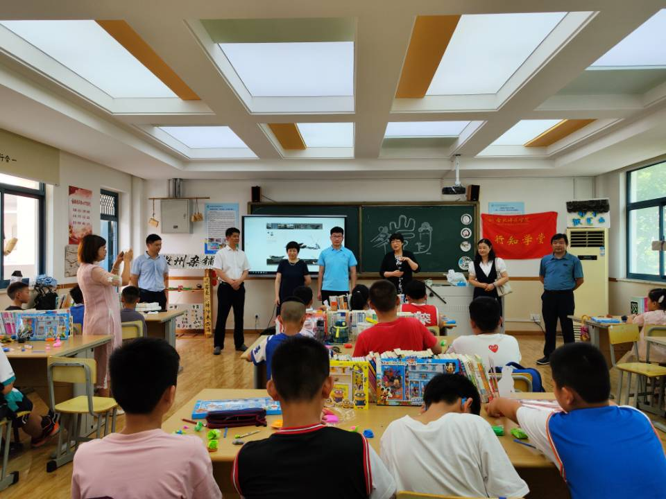 方东玲一行人首先参观了学校的锦实劳动基地,并和锦实劳动基地的小学生们亲切交流,询问假期劳动情况;随后来到了二楼的图书阅览室,这里正在进行的是永利yl23411集团开展的“行知学堂”,小先生们正在教授以“徽风皖韵”为主题的手工课。方东玲一行人饶有兴致地观摩了课程教学,并将带来的精美文具送给可爱的孩子们。方东玲详细地询问了团队组成、课程安排和活动开展情况,鼓励小先生们结合自己的专业特色为孩子们带去形式多样、内容丰富的教育,为孩子们传授有用的知识,让孩子们健康快乐阳光成长,同时叮嘱小先生们要牢记习近平总书记的要求,严守教师道德,塑造爱生情怀,并通过实践不断检验、提升自己的专业能力,让自己在服务社会中尽快成长,办好学校和家长满意的行知学堂。
