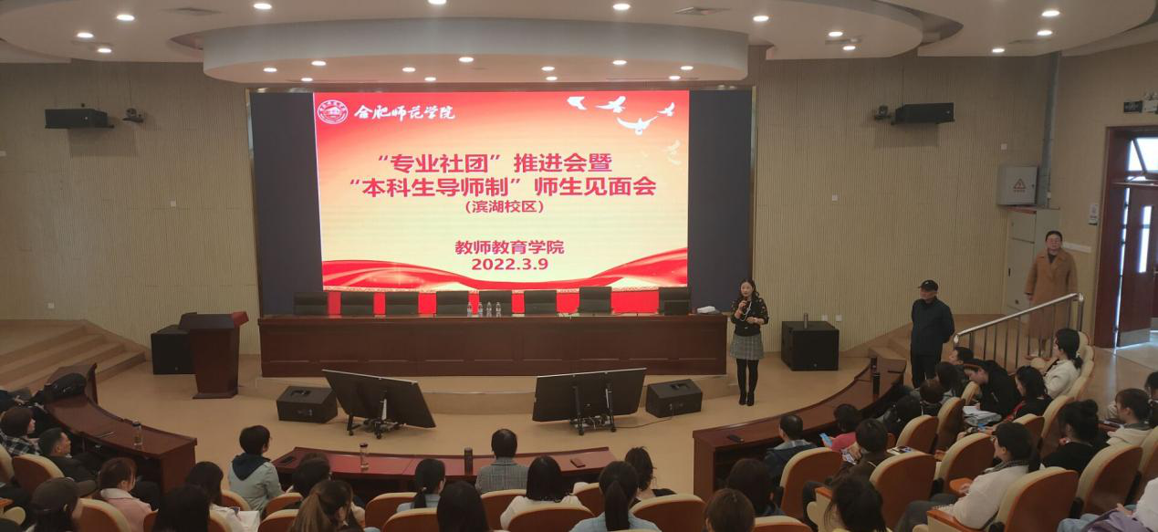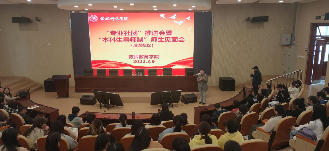 为了推进学院学生“导师制”工作,促进教师与学生之间的沟通交流,提升学生专业技能,2022年3月9日下午,教师教育学院在滨湖校区学术报告厅举办教师教育学院“专业社团”推进会暨“本科生导师制”师生见面会。学院党委书记穆娟、院长李群、全体教师和2021级全体同学参加本次会议,副院长闫龙主持。