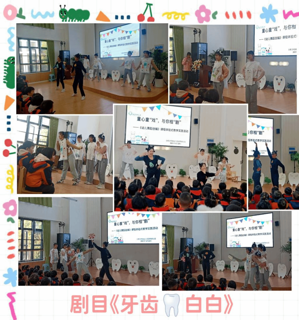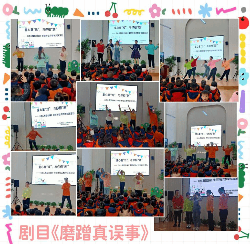 【本网讯】为深入开展基础教育送教服务,提高幼小衔接质量和水平,2021年12月20日,教师教育学院教工第一党支部组织党员教师及学生,赴合肥市明珠幼儿园“开展童心童’戏’,与你相’剧’——《幼儿舞蹈创编》课程体验式教学实践活动”。学院领导对本次活动高度重视,给予大力支持,教工一支部党员教师唐银全程参与、指导学生进行儿童戏剧、舞蹈的创编排练与演出。