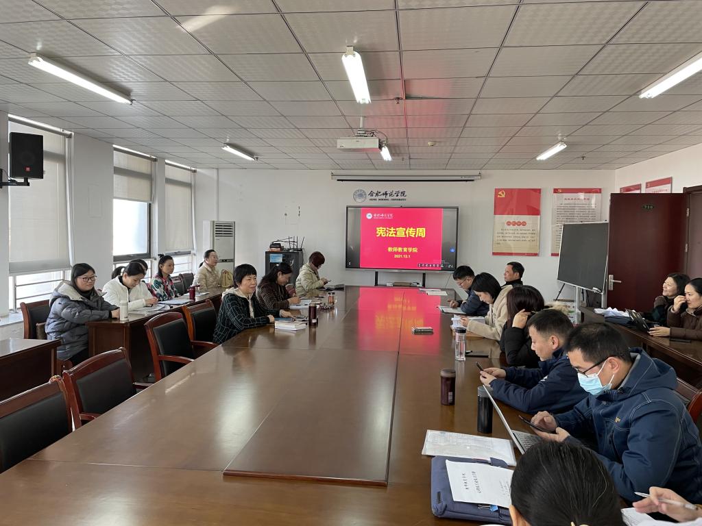 12月1日,教师教育学院召开全体教职工理论学习会议。会上,党委书记穆娟传达了《关于开展2021年“宪法宣传周”活动的通知》,带领全体教职工学习了《习近平法治思想学习纲要》的部分章节,并共同观看了《新闻联播》栏目对《习近平法治思想学习纲要》出版发行及主要内容的介绍视频。穆娟要求,各支部、全体党员要根据通知安排,开展“宪法宣传周”活动,原原本本、逐章逐条通读、学习宪法,学习习近平法治思想,辅导员要在学生中广泛开展宪法学习宣传活动,扩大法治宣传的受众面,持续做好习近平法治思想宣传教育,教育引导学院师生弘扬宪法精神,维护宪法权威,践行法治理念,不断增强走中国特色社会主义法治道路的自信和自觉。
