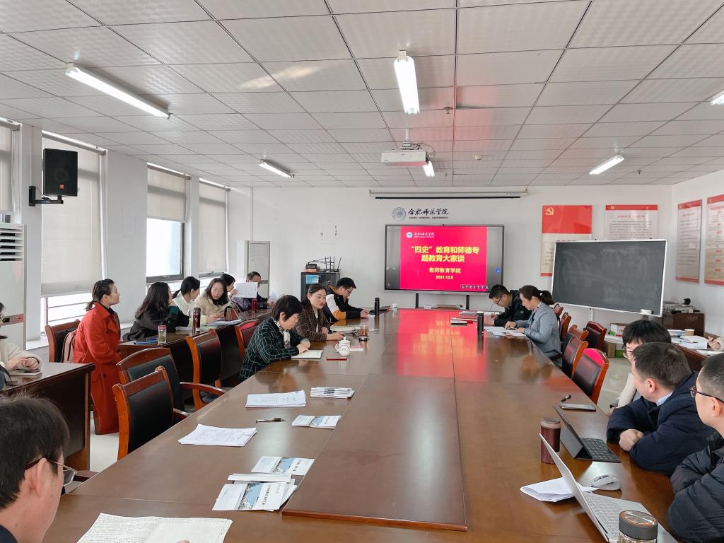 教师教育学院将继续抓好党史学习教育和师德专题教育,通过二级中心组理论学习、教职工理论学习、“三会一课”等形式开展理论学习,加强对习近平法治思想、“七一”重要讲话精神、党的十九届六中全会精神等重要内容的宣传教育,引导教师从党史中汲取初心力量,牢记为党育人、为国育才使命,提高政治觉悟,立足实际、守正创新,学师德楷模、遵师德规范、守师德底线,更好地担当起学生健康成长的指导者和引路人的责任。(教师教育学院:邢文静)