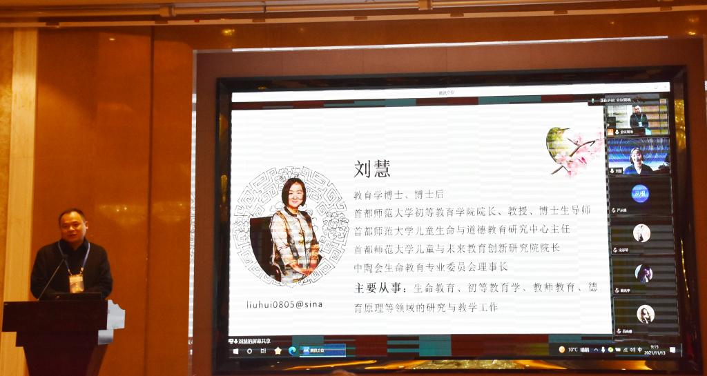 首都师范大学、杭州师范大学、安徽师范大学的三位专家分别作特邀专题报告。首都师范大学初等教育学院院长刘慧教授报告为“新时代师范生师德养成的核心要义”,她通过对新时代师德方位的重新定位,重点关注后疫情时代的生命教育,鼓励教师做儿童生命成长的“引路人”,从生命出发以爱育爱,探索构建师范生师德养成教育的五大体系。严从根教授结合杭州师范大学的教师教育教学实践,以“教师教育:精神引领的艺术”为题作了大会报告,对“我们到底需要什么样的教师教育”这一问题作了深入思考,并针对教师教育的培养给出了创新性的意见。阮成武教授则结合陶行知精神作了题为“为何、何为、为谁:教师成为大先生的时代镜像”的发言,从三个层面详细阐述了“大先生”的内涵,同时指出教师成为大先生的过程也体现了社会发展赋予新时代教师的历史机遇和社会使命。