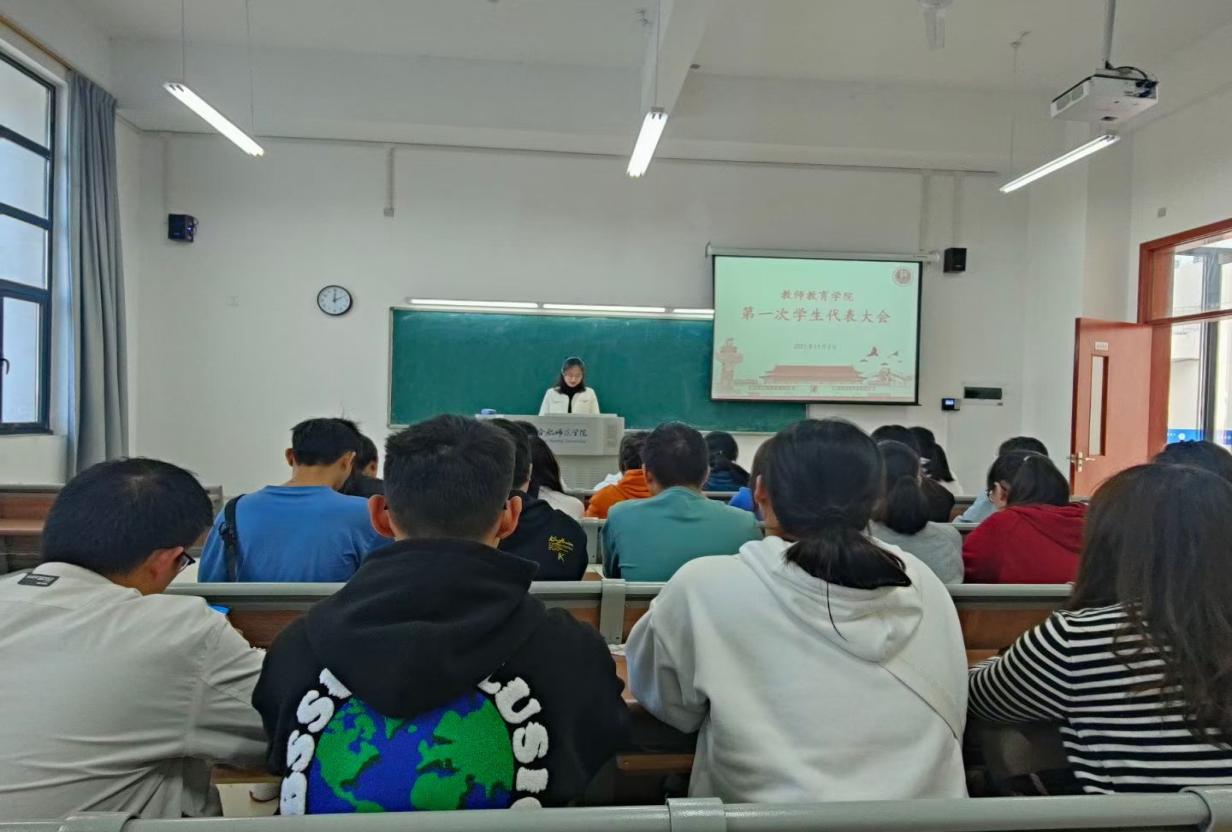 根据《关于筹备召开永利yl23411集团第三次学生代表大会的通知》精神,学院于2021年11月3日在滨湖校区博学楼A102教室组织召开了教师教育学院第一次学生代表大会。本次大会由学生会主席王雨欣主持,各班级学生代表积极参会。大会全面总结了过去一年的学生会工作,并选举产生了新一届主席团。