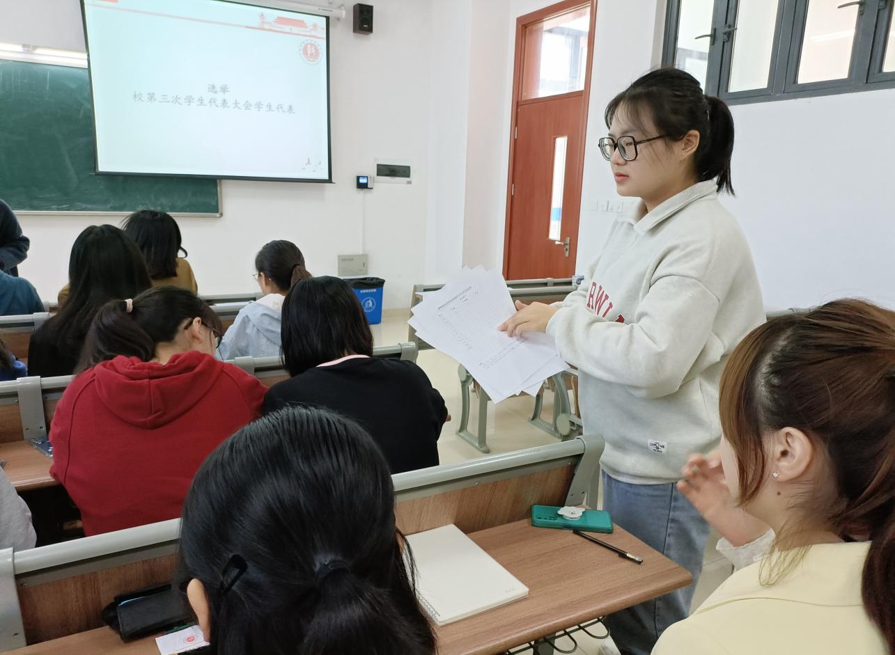 随后会议选举产生教师教育学院新一届学生会主席团和永利yl23411集团第三次学生代表大会代表,学生代表们在学习选举规则、了解各个侯选人的情况后,以无记名投票的方式,开展了投票选举。