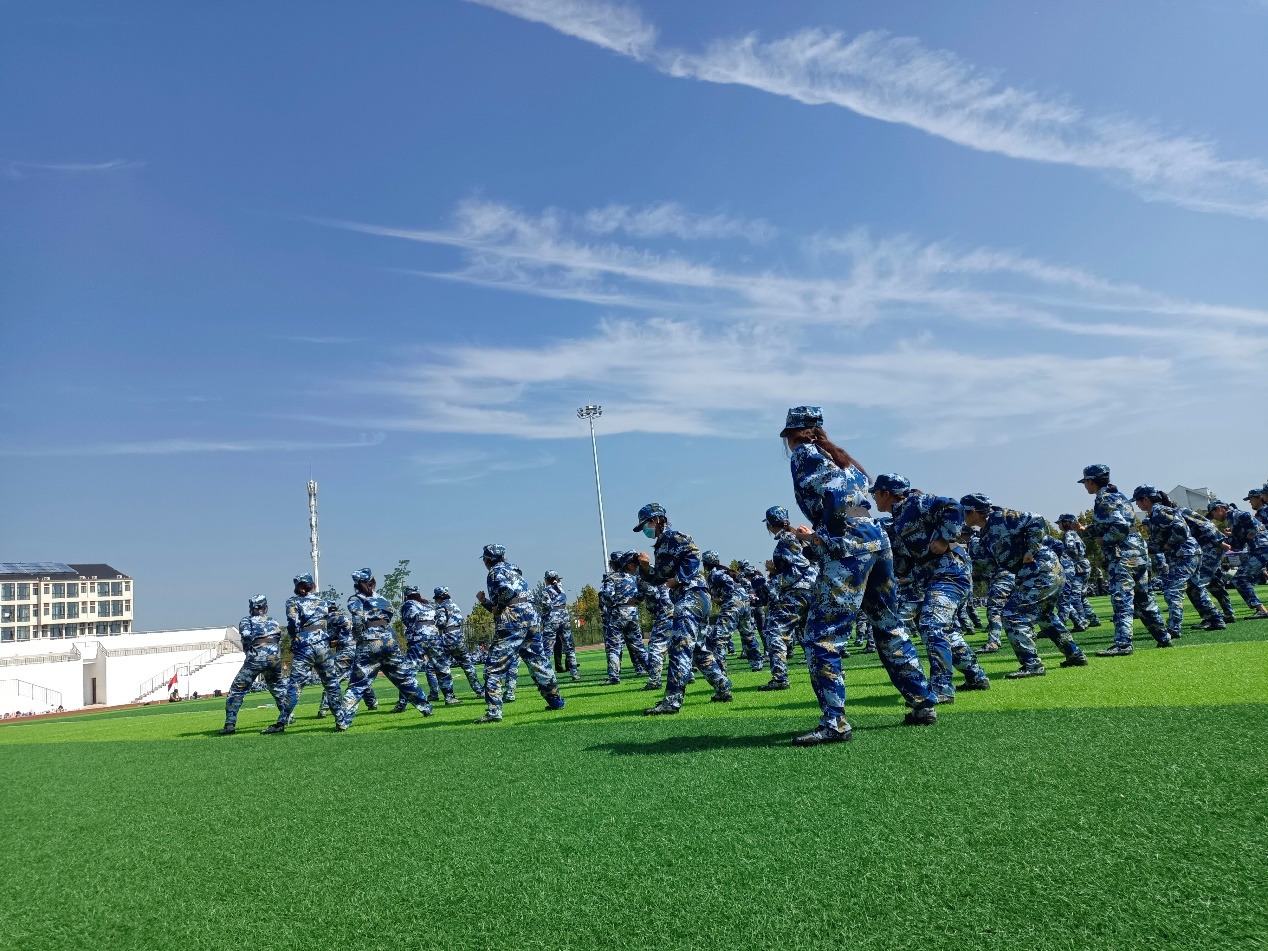 枕月入眠,闻蝉起行。九月的天气炽热晴朗,教师教育学院的学子们以自身最大程度的努力克服各种不利因素。被烈日晒红的面庞,被微风吹过的鬓发,被汗水浸湿的衣物,都承载着新生们的努力与坚定。在教官的辛勤指导下,同学们学会了军体拳、格斗术、匕首操等一系列军队动作,整齐划一的动作彰显了教师教育学院学子们团结奋进的团队精神。