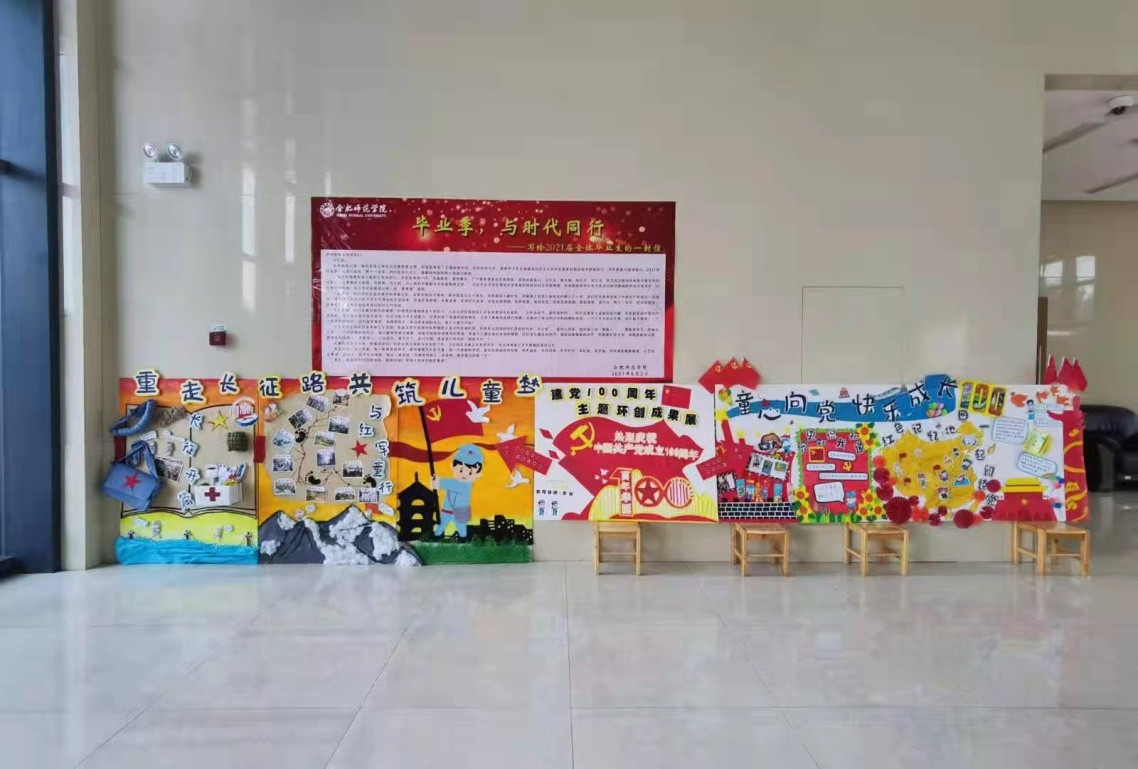 6月23日学院举办了学前系建党百年环创成果展,全方位展示了此次实践中的所有成果。