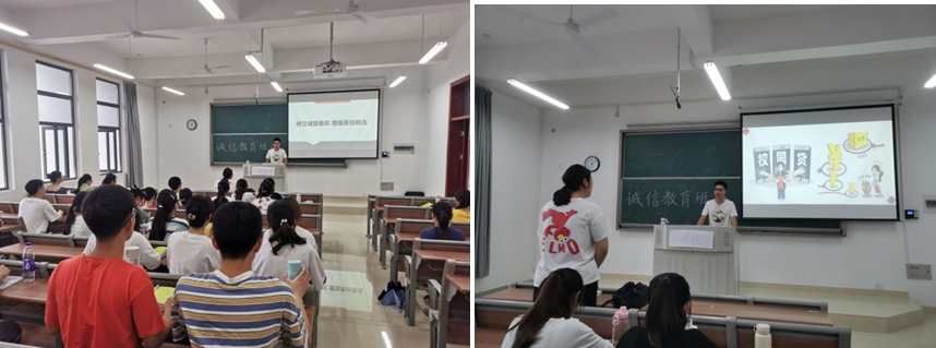 2018级应用心理学班开展了诚信宣誓和诚信图片展活动;2019级应用心理学班、2018级小学教育2班、2020级应用心理学班和2020级小学教育1班等班级开展了诚信金融知识讲座活动;2019级学前教育普本班和2019级小学教育2班开展了资助政策宣传活动等。