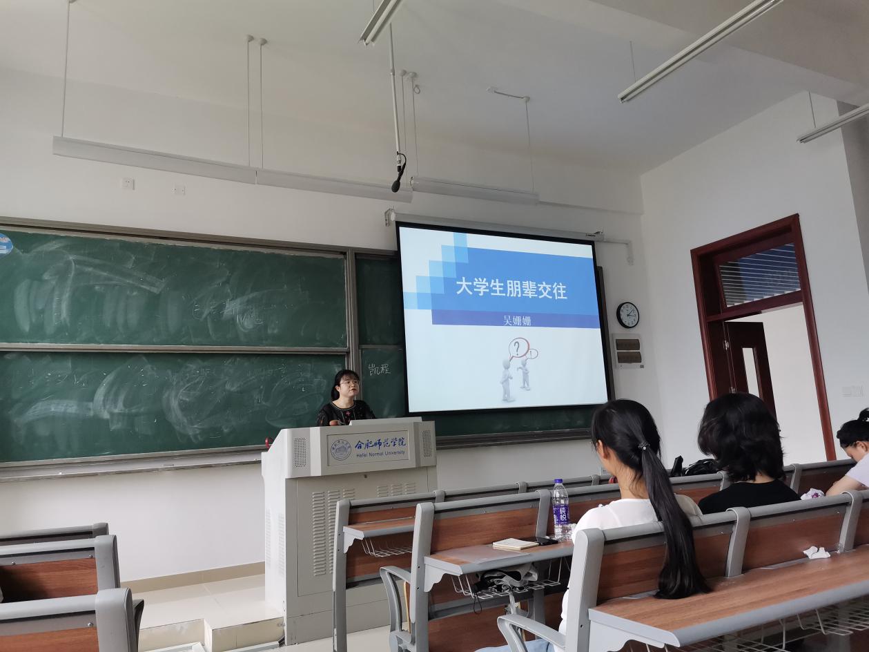 吴珊珊老师从朋辈交往的含义、朋辈交往对大学生成长的意义、大学生主要朋辈关系以及如何建立良好的朋辈关系等方面向同学们娓娓道来。她强调朋辈交往对满足大学生情感交流的需求和促进情感的成熟发展的重要性以及对大学生生活目标和价值观、学习行为规范的影响。同时,从宿舍人际关系举例引导大学生在生活中应该如何处理与他人相处时出现的问题、如何维系良好的人际关系,总结了与朋辈交往的策略。