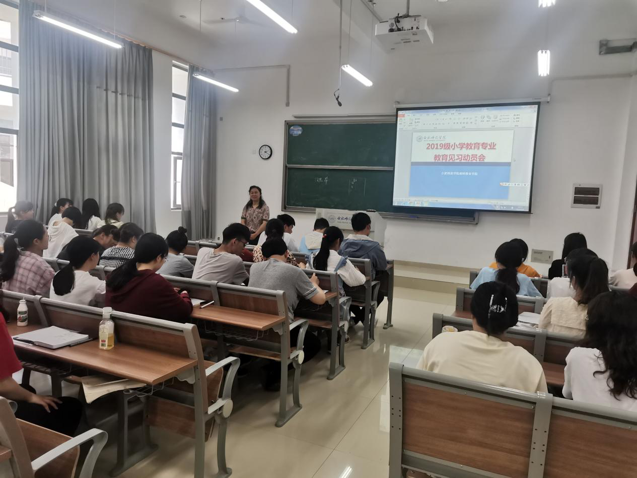 为了加强师范生对基础教育现状的了解,进一步做好学院见习工作,引导学生做好见习前的各项准备,5月9日下午,教师教育学院在滨湖校区博学楼B107教室组织召开了2019级小学教育专业见习动员大会。教师教育学院教育系主任汪昌华出席并主持会议,2019级小学教育专业全体同学参加。