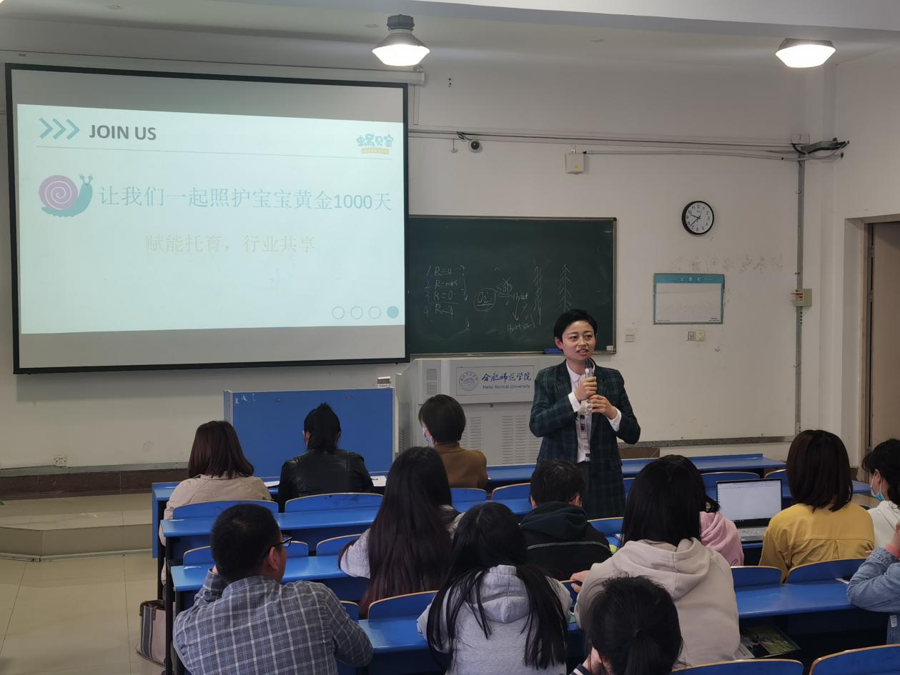 随后,蜗呗家社区共享托育中心的负责人程老师、合肥明珠幼儿园蔡园长等分别就单位作了详细的介绍,对单位的招聘条件、就业环境、工作待遇、未来发展等作了明确说明。