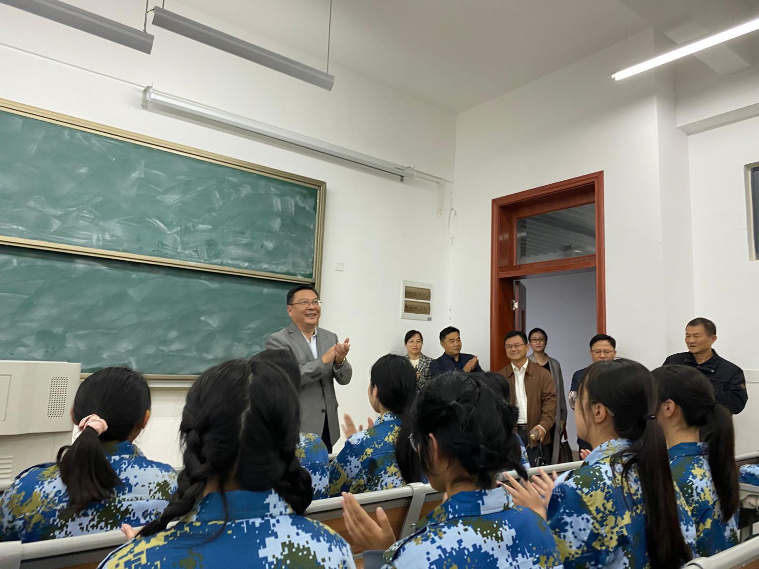 教师教育学院的新生以经久不息的掌声欢迎徐书记一行人的到来。“军训中的合师青年是一道亮丽的风景线。”徐成钢书记看到同学们挺拔的坐姿、整齐的着装、认真的态度,感叹道:“永利yl23411集团又注入了一股新生力量”。他祝贺同学们迎来了一个崭新的人生阶段,军训是大学生涯中最值得珍惜和回忆的。通过军训,同学们不仅能学到国防知识,还能学习到人民解放军艰苦奋斗、吃苦耐劳,爱国奉献、不怕牺牲,勇敢顽强、坚韧不拔的优良革命传统。