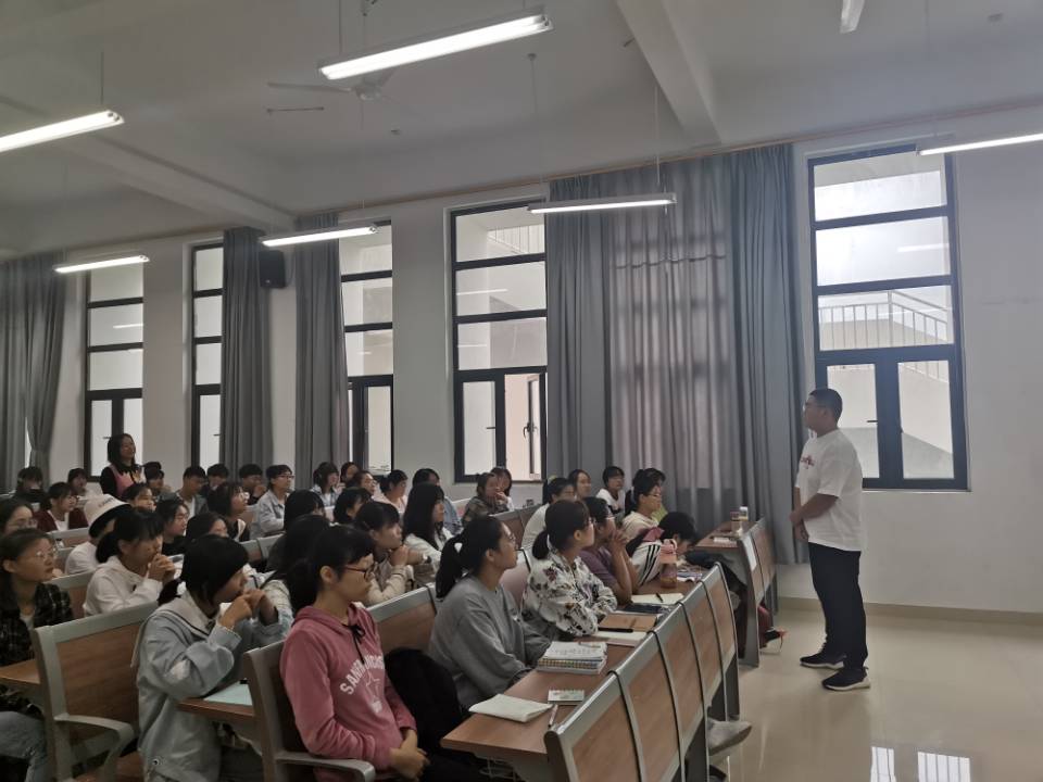 随后,她简述了“一二三四”人才培养模式、课程设置(包括通识课程、专业教育课程、职业实训和素质拓展)以及课程实施等内容。接着,她详细介绍了小学教育专业的含义、专业特色,并探讨了小学教育专业的未来可能发展状况。在讨论到多媒体智能授课模式和老师们的言传身教模式的比较时,汪昌华教授亲切地与同学们探讨了多媒体智能授课模式与教师言传身教模式的优劣势等问题,也让学生深刻了解到课堂教学的重要性,粉笔带来的温度是电脑无法比拟的。她明确指出成为一名合格的小学教育教师要具有较高的综合素质(沟通协调能力、组织能力、板书书写等),同时她希望同学们可以积极参与社团活动来锻炼自我,挑战自我。