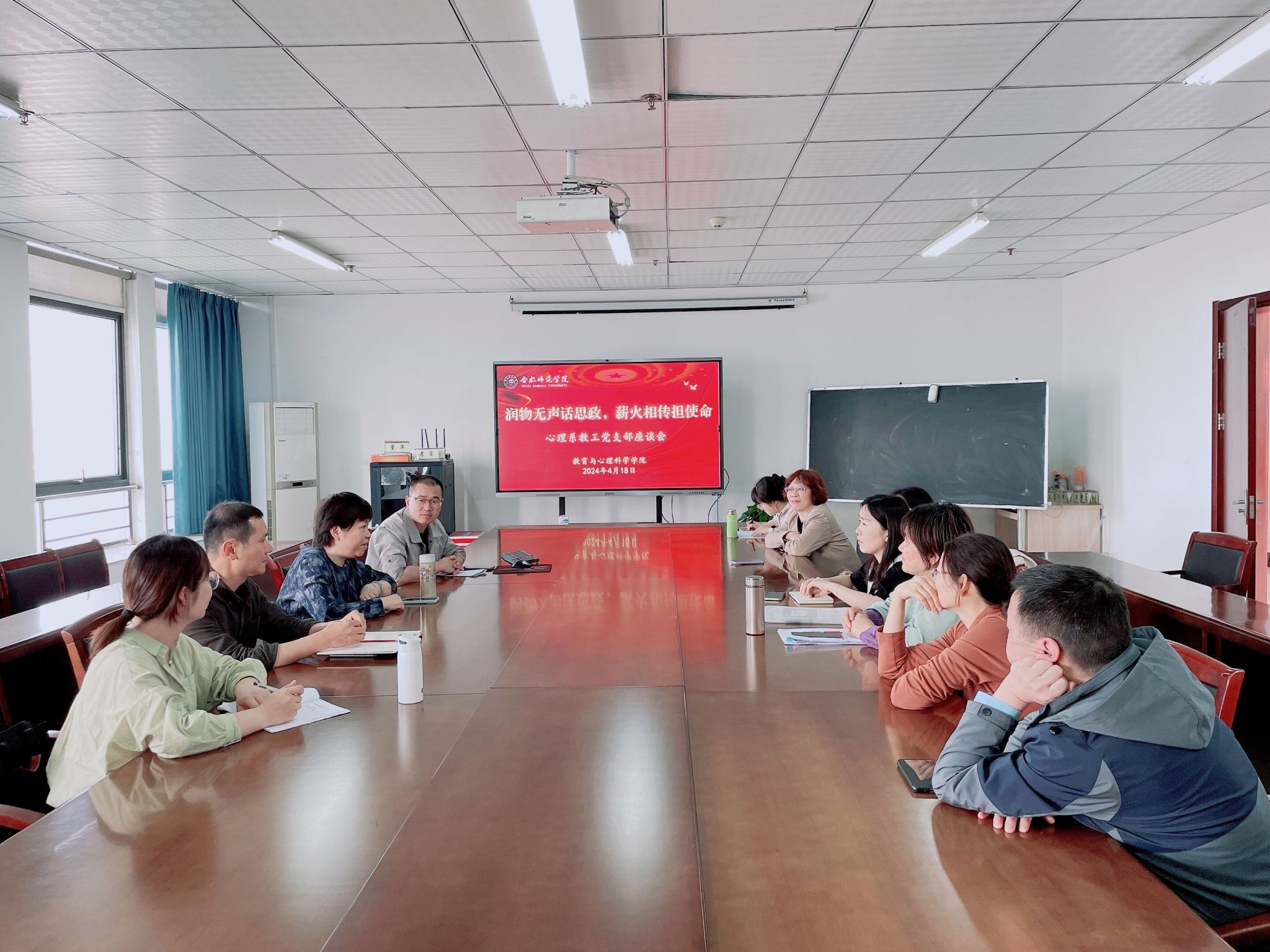 4月18日下午,yl23411永利集团心理系教工党支部在锦绣校区行知楼710会议室召开“润物无声话思政,薪火相传担使命”主题座谈会。本次座谈会邀请即将荣休的李群教授主讲,心理系教工党支部全体党员参加会议,部分非党员教师列席会议,座谈会由支部书记黄凤主持。