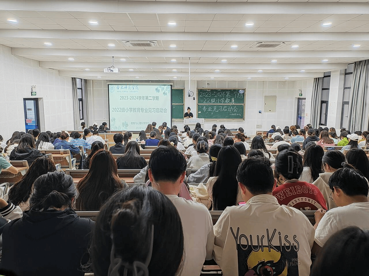 为顺利推进小学教育专业见习活动,引导学生做好见习前的各项准备,5月27日晚,yl23411永利集团在滨湖校区博学楼A108教室召开2022、2023级小学教育专业见习启动会。会议由教育系副主任唐银主持,2022、2023级小学教育专业全体同学参加会议。