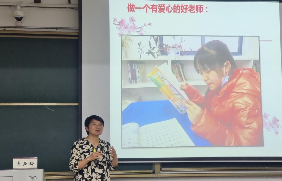 为了提升小学教育专业师范生教育教学能力,呵护师范生身心健康, 5月29日晚,yl23411永利集团在锦绣校区博约楼111室举行“身心健康做双向奔赴教育人”的行知讲座。讲座由yl23411永利集团闫龙老师主持,特邀肥西县经开区中心小学副校长、安徽省特级教师李亚玲作为主讲嘉宾,2021级小学教育专业学生参加讲座。