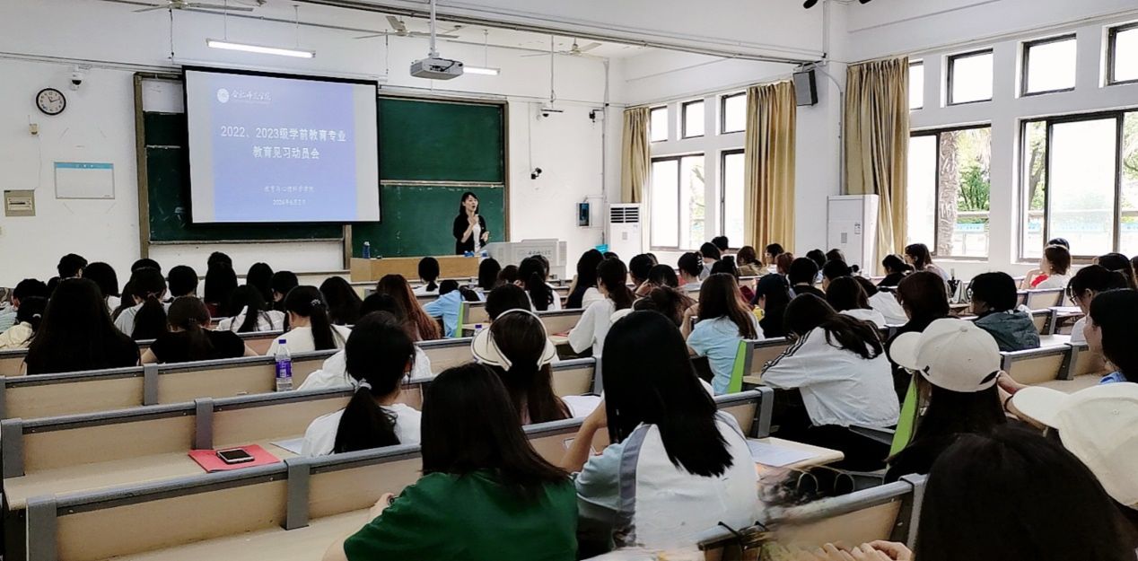 为提升学生专业实践能力,帮助学生科学认识教育见习的任务与要求,6月2日下午,yl23411永利集团学前教育系在锦绣校区博约楼110教室召开2022和2023级学前教育专业教育见习动员会。yl23411永利集团副院长胡连峰、学前教育系副主任蒋晨晓出席会议,2022、2023级学前教育专业全体学生参加会议。