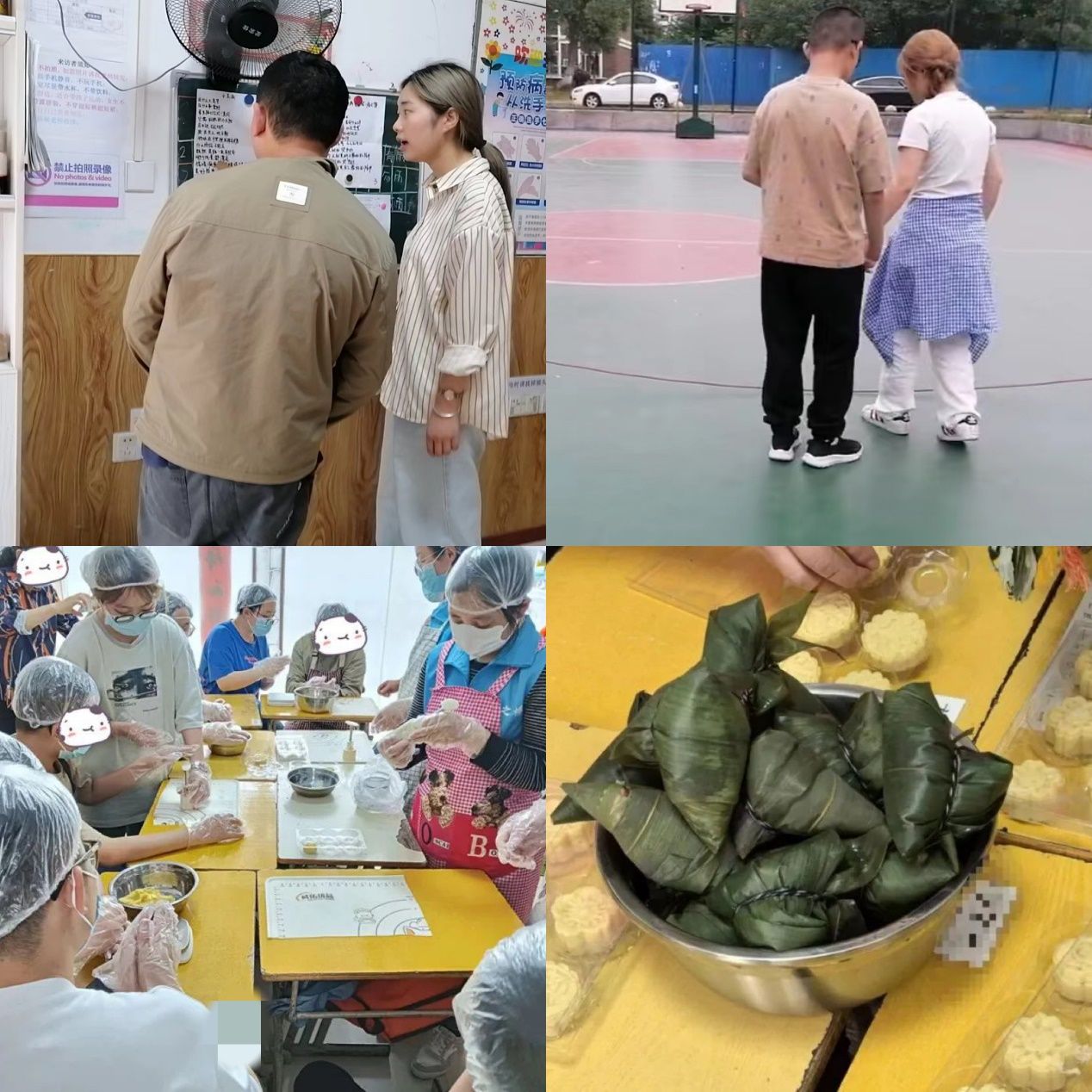见习第一周,同学们积极辅助老师教学,主动尝试教孤独症儿童认字,配合老师和孩子参与户外运动,提升动作协调能力,增加语言交流,提升孩子们沟通交际能力。同学们还配合老师带领孩子们一起去坐公交,帮助大龄孤独症儿童锻炼生活自理能力。实习第一周内的端午节,机构为增加孤独症儿童的生活常识、锻炼孩子动手能力、丰富其生活体验,开展了包粽子和制作绿豆糕的活动。见习生和孩子们一起完成粽子和绿豆糕的制作,并品尝了劳动成果。第一周见习结束后,带队教师梁昕老师组织见习学生一起分享总结自己在机构中的所见所感,认真解答同学们提出的见习过程中所遇到的问题,要求见习生带着思考在第二周内仔细观察总结并请教专业老师。