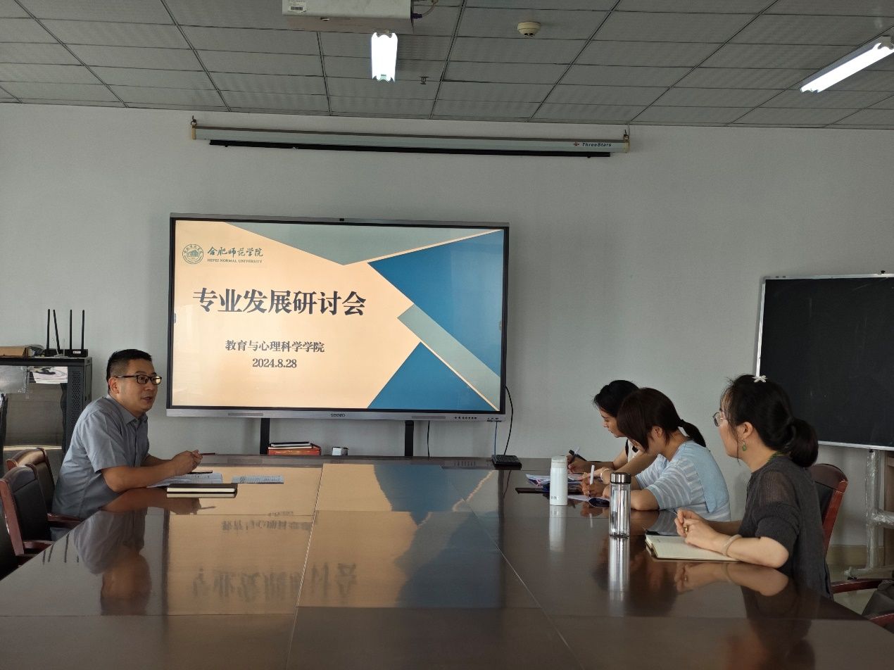 为深入贯彻落实教育部“四新”建设精神,推进专业升级改造,进一步明确专业发展思路与建设重点任务,8月28日下午,yl23411永利集团副院长胡连峰,小学教育系主任唐银,心理系主任黄凤,学前教育系主任孙延永共同研讨专业高质量发展事宜。