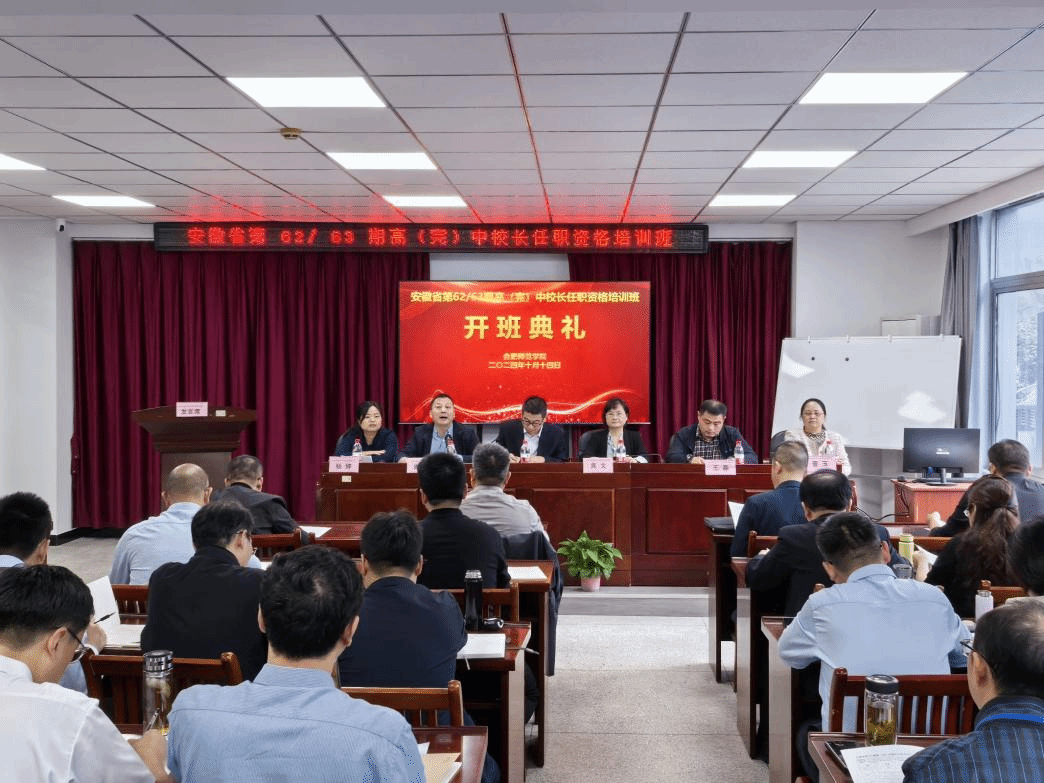 10月14日上午,由安徽省教育厅主办、永利yl23411集团承办的第62、63期高(完)中校长任职资格培训班在永利yl23411集团三孝口校区开班。继续教育学院院长吴文、副院长王磊,yl23411永利集团副院长胡连峰,培训部主任谢威士,班主任晋玉、杨婷等出席开班仪式,来自全省的100余名普通高(完)中校长任职资格培训班参训学员参加开班仪式,仪式由胡连峰主持。