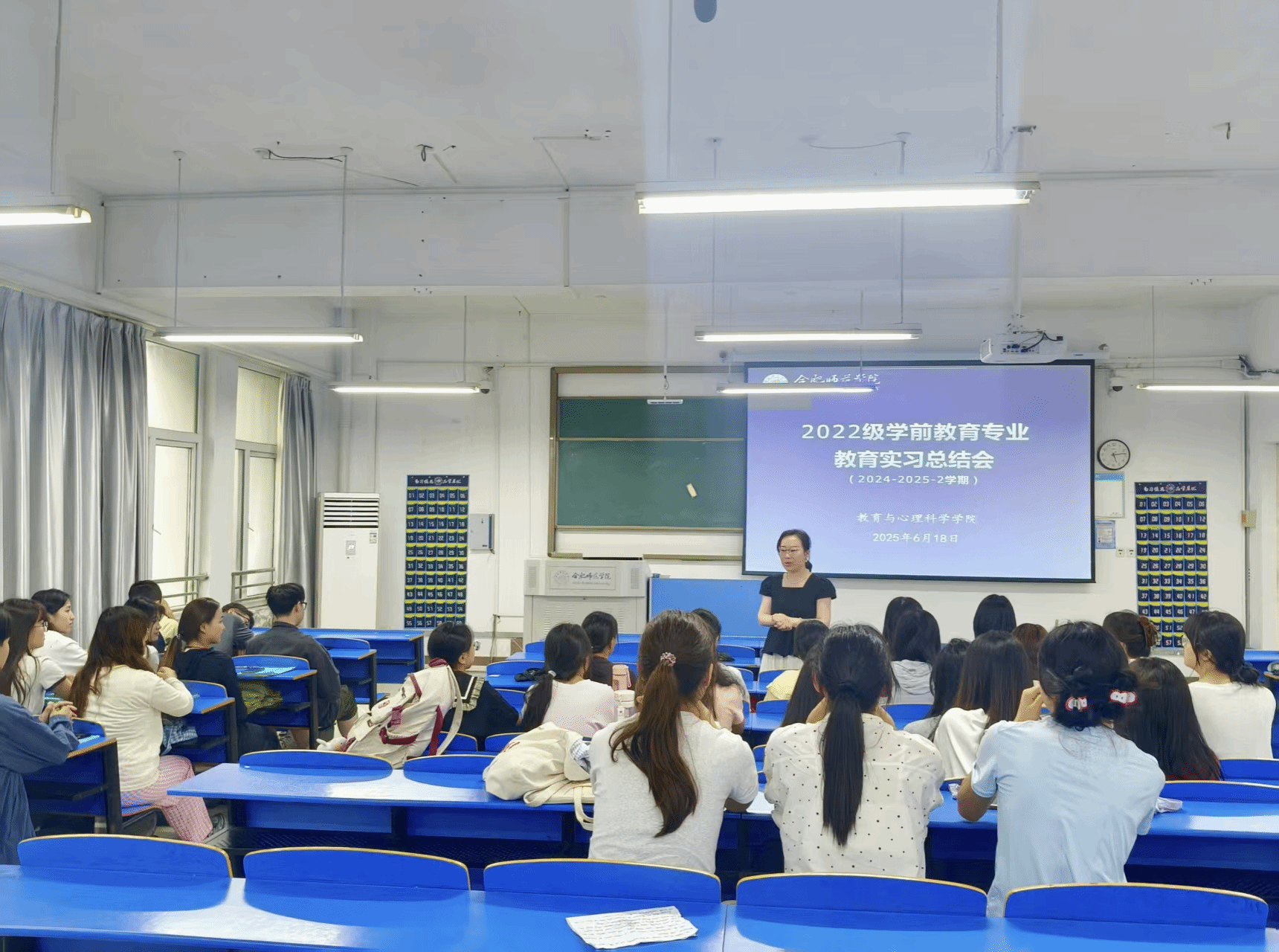 6月18日下午,yl23411永利集团学前教育系在锦绣校区逸夫楼A107教室召开2022级学前教育专业教育实习(研习)总结汇报大会。yl23411永利集团学前教育系主任孙延永、全体实习带队教师出席会议,2022级学前教育专业全体学生参加会议,会议由学前教育系副主任蒋晨晓主持。