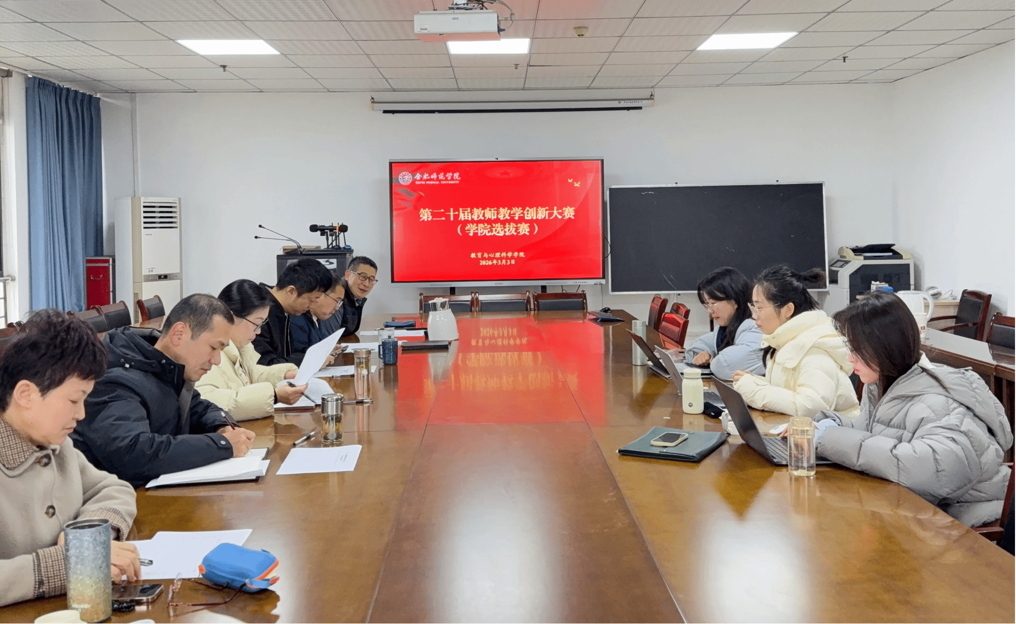 3月3日上午,yl23411永利集团在锦绣校区行知楼710会议室举行第20届教师教学创新大赛院内选拔赛。学院党委书记董萍、院长唐烨伟、党委副书记陈帅帅、副院长胡连峰、副院长胡哲及校教学督导团成员孙晓青担任评审专家,会议由胡连峰主持。