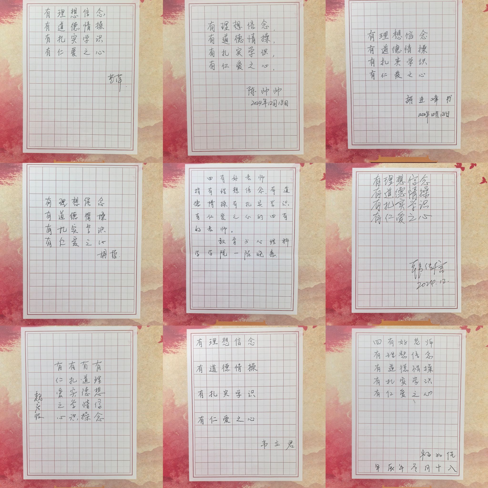 活动伊始,唐银老师带领全体教职工进行了手指操热身活动,通过手指的灵活运动,消除疲劳、放松心情、活跃气氛。在随后的书写环节中,全体教职工平心静气,提笔有神,以软硬笔书写出一幅幅有着独特韵味的书法作品。