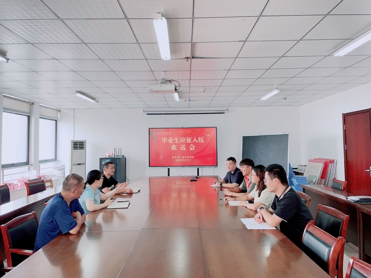 (本网讯)携笔从戎书青春本色,建功军营圆强国梦想。9月7日下午,yl23411永利集团在锦绣校区行知楼710会议室举行毕业生应征入伍欢送会,学院党委书记董萍,党委副书记陈帅帅,党委委员、副院长闫龙,辅导员王磊、屠家宝、唐淼及学院应征入伍毕业生代表艾则等参加会议。会议由董萍主持。