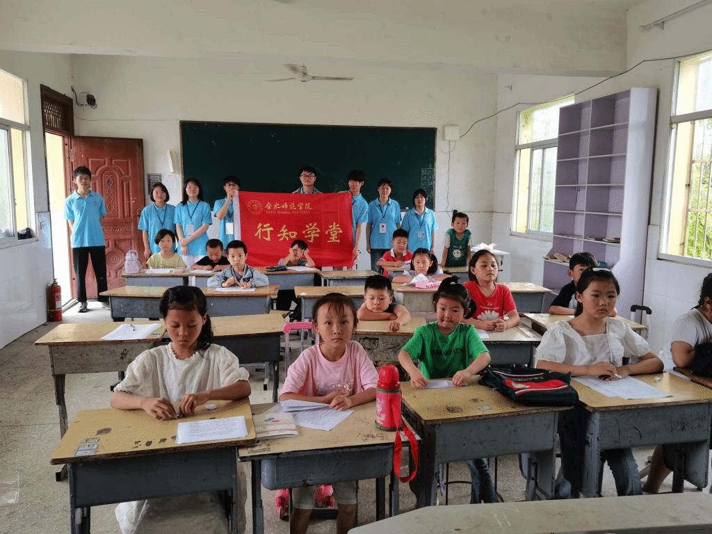 7月3日,yl23411永利集团“利辛王市行知学堂”在亳州市利辛县王市中王小学正式启动。来自yl23411永利集团、文学院、电子信息与集成电路学院、经济与管理学院、美术与设计学院的10名小先生以及全体小学员共同参加开班仪式。