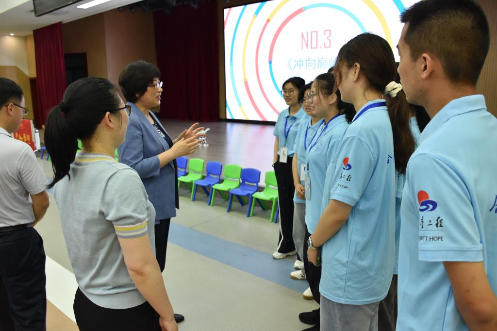 课程结束后,方东玲与小先生们开展了亲切座谈,详细地询问了团队组成、课程安排和活动开展等情况。方东玲指出,“行知学堂”暑期社会实践活动是培养大学生社会责任感和锻炼专业实践技能的良好平台,小先生们做的是“一棵树摇动另一棵树”的工作,要结合专业特色为小学员们送去内容丰富的课程教学。对做好后续活动,方东玲向小先生们提出了三点希望:一是希望小先生们紧紧围绕师范生专业能力发展,进一步巩固和提高教育教学本领,更好地传承和弘扬行知精神;二是希望小先生们能够开展课后研讨,不断总结反思,在教学形式、教学内容、教学方法上推陈出新,同时加强学习、强化合作。三是希望小先生们能够充分利用“行知学堂”活动平台,通过实践不断检验和发现问题,努力提升专业素养,让自己在服务社会中快速进步、快速成长。