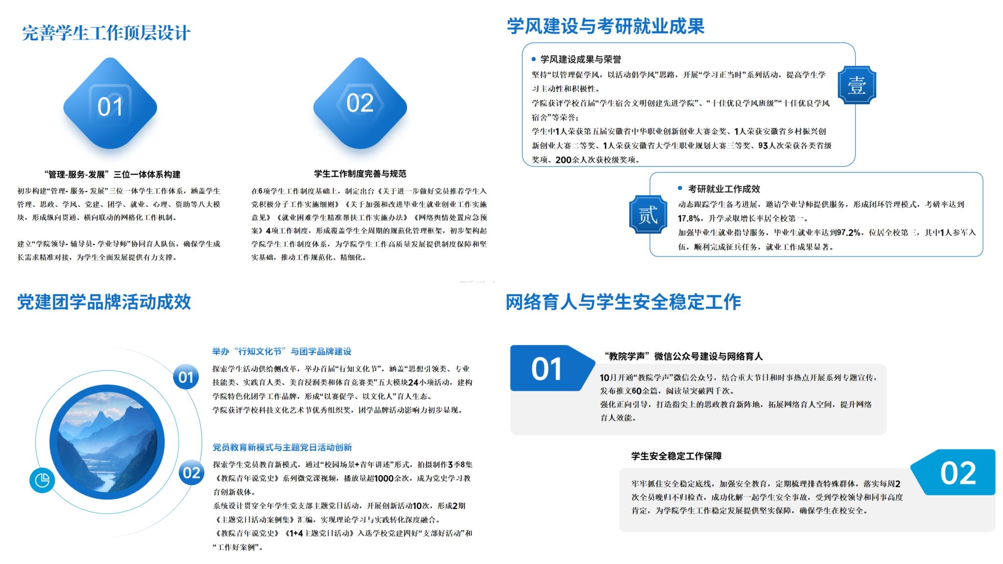 董萍充分肯定了上年度学生工作成效,并就新阶段工作提出四点要求:一要提高政治站位,坚持“为党育人、为国育才”使命,将思想政治教育贯穿工作全过程,二要聚焦学生成长,以“五育并举”为抓手,在科创实践、生涯规划、困难帮扶中提升育人实效,三要强化队伍建设,鼓励辅导员加强理论学习与研究,争做“理论+实践”型学工骨干,四要深化党建引领,推动党建与学工深度融合,以高质量党建带动团学组织、班级建设协同发展。董萍勉励全体专兼职辅导员要以积极奋进的姿态,主动融入学院发展大局,为培养新时代高素质人才贡献更大力量。