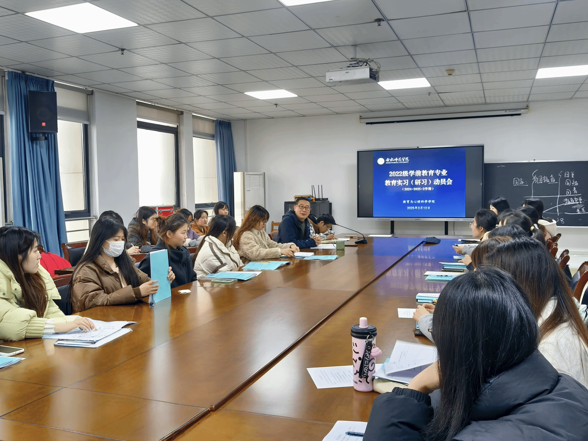 3月12日下午,yl23411永利集团学前教育系在锦绣校区行知楼710会议室召开教育实习(研习)动员会。yl23411永利集团副院长胡连峰出席会议,2022级学前教育专业全体学生参加会议。会议由yl23411永利集团学前教育系副主任蒋晨晓主持。