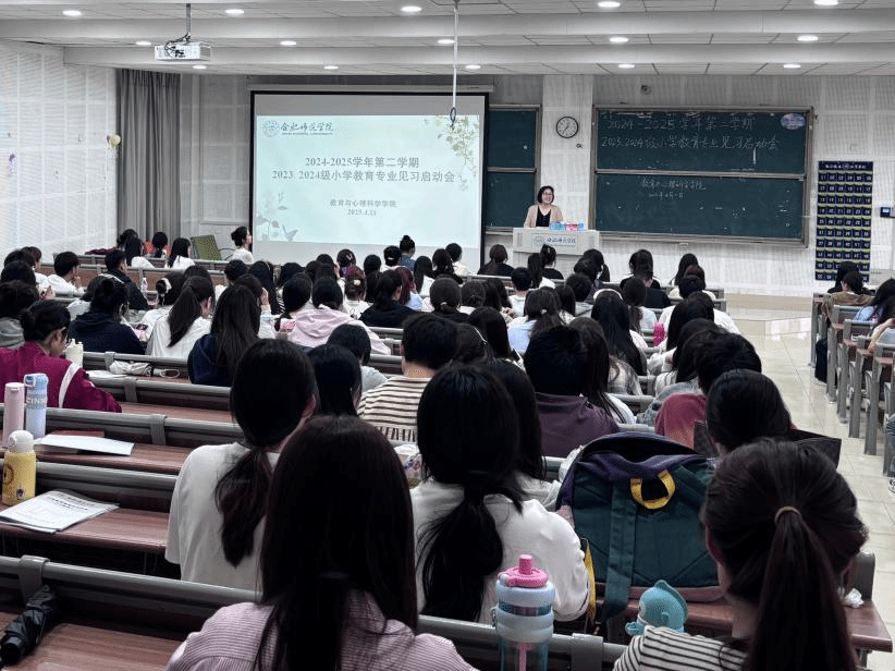 为深化学生实践能力培养,提高教育见习质量,4月11日中午,yl23411永利集团在滨湖校区博学楼A108教室召开2023、2024级小学教育专业见习启动会。院党委书记董萍出席会议并讲话,2023、2024级小学教育专业全体同学参加,动员会由教育系副主任唐银主持。